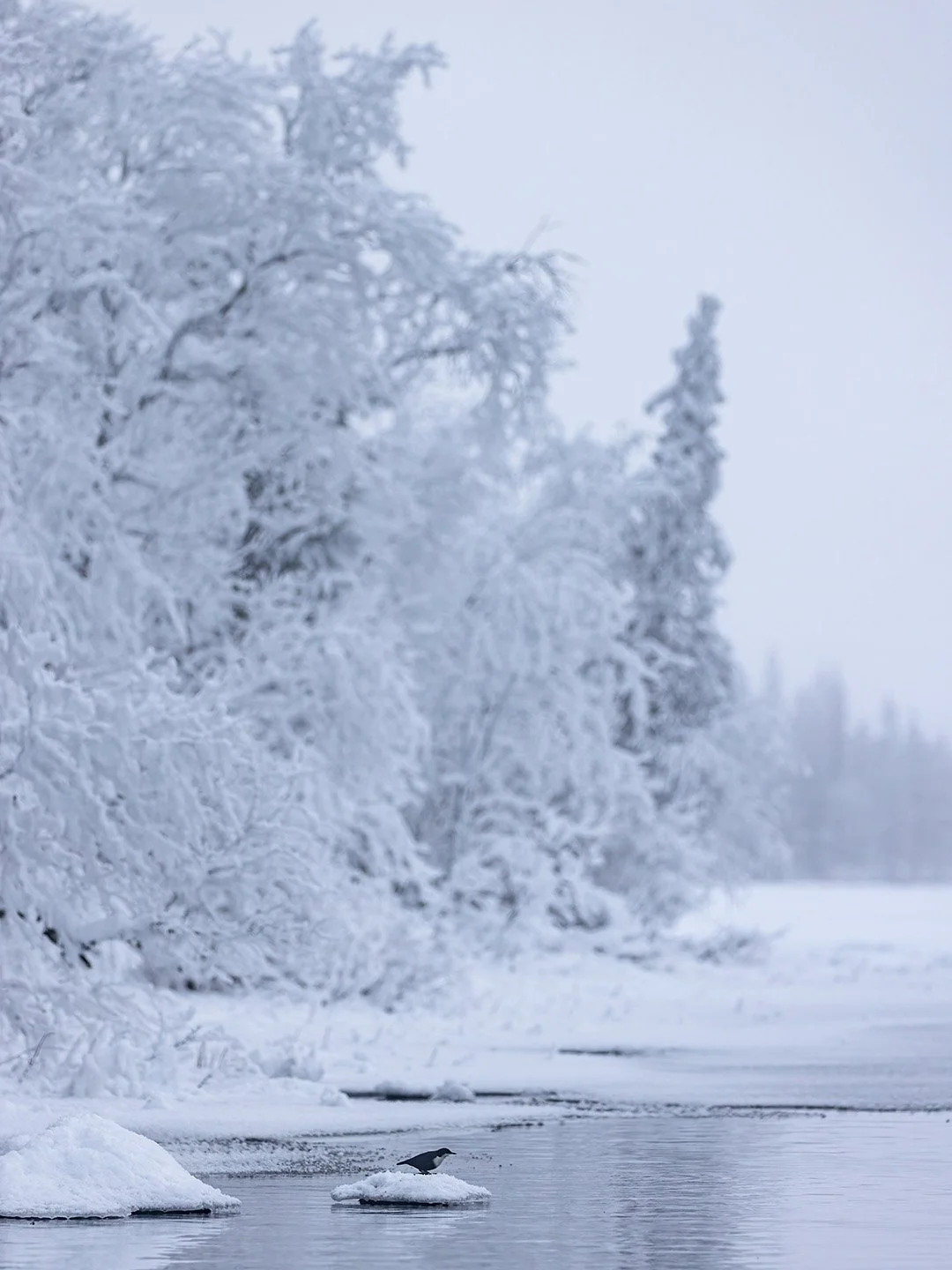 Where the local river met this lake a patch of water remained ice free. It was home to both whooper swans and white throated dippers. Quite how these birds survive, and in fact thrive, in such an extreme environment is quite remarkable.
