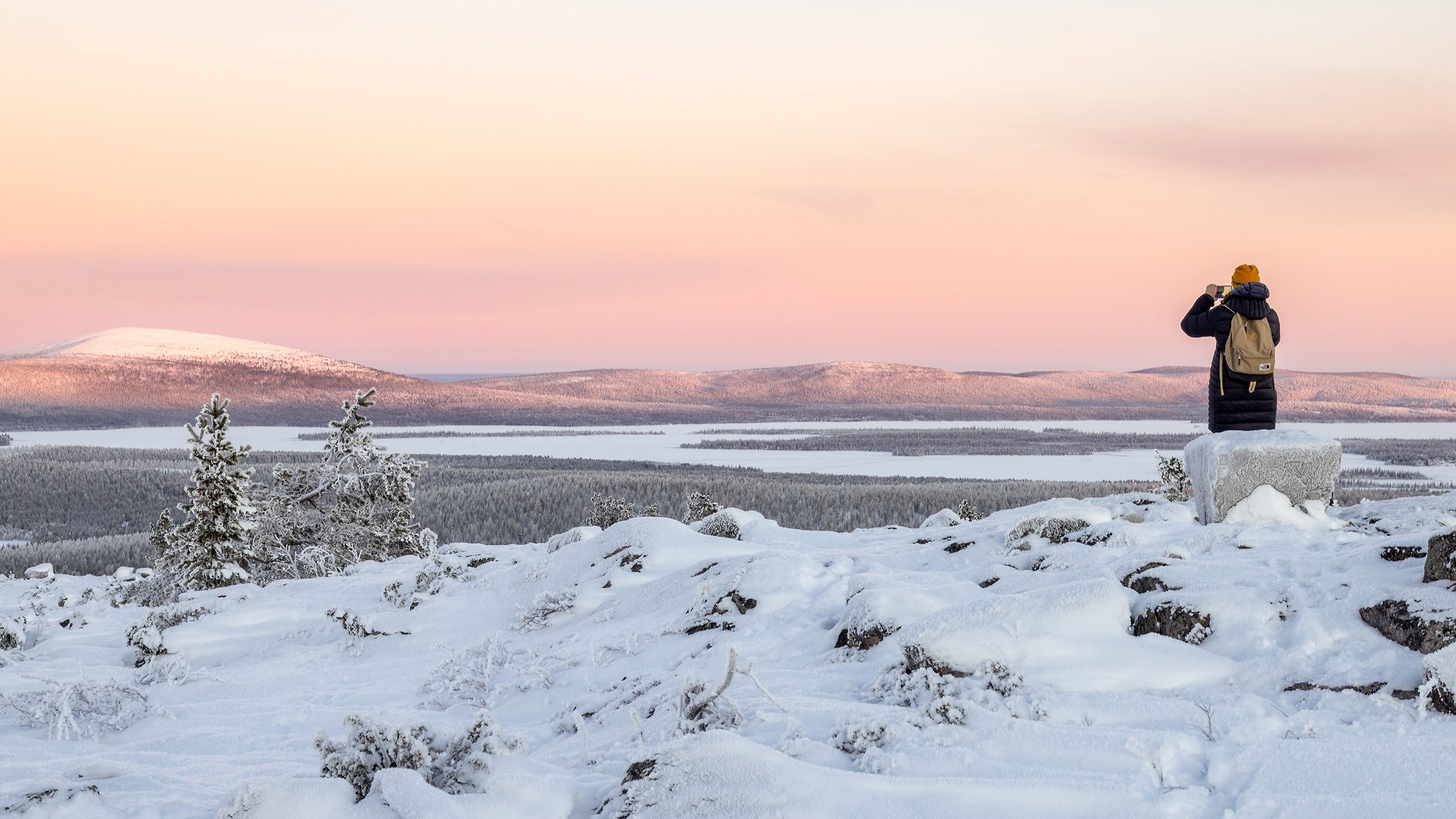 One of the highlights of the trip was an afternoon walk up Särkitunturi fell, where we were lucky enough to witness one of the most beautiful sunsets we’ve ever experienced. Being at such a northern latitude the sun seemed to take forever to disappear below the horizon, as the soft arctic light became more and more magical.