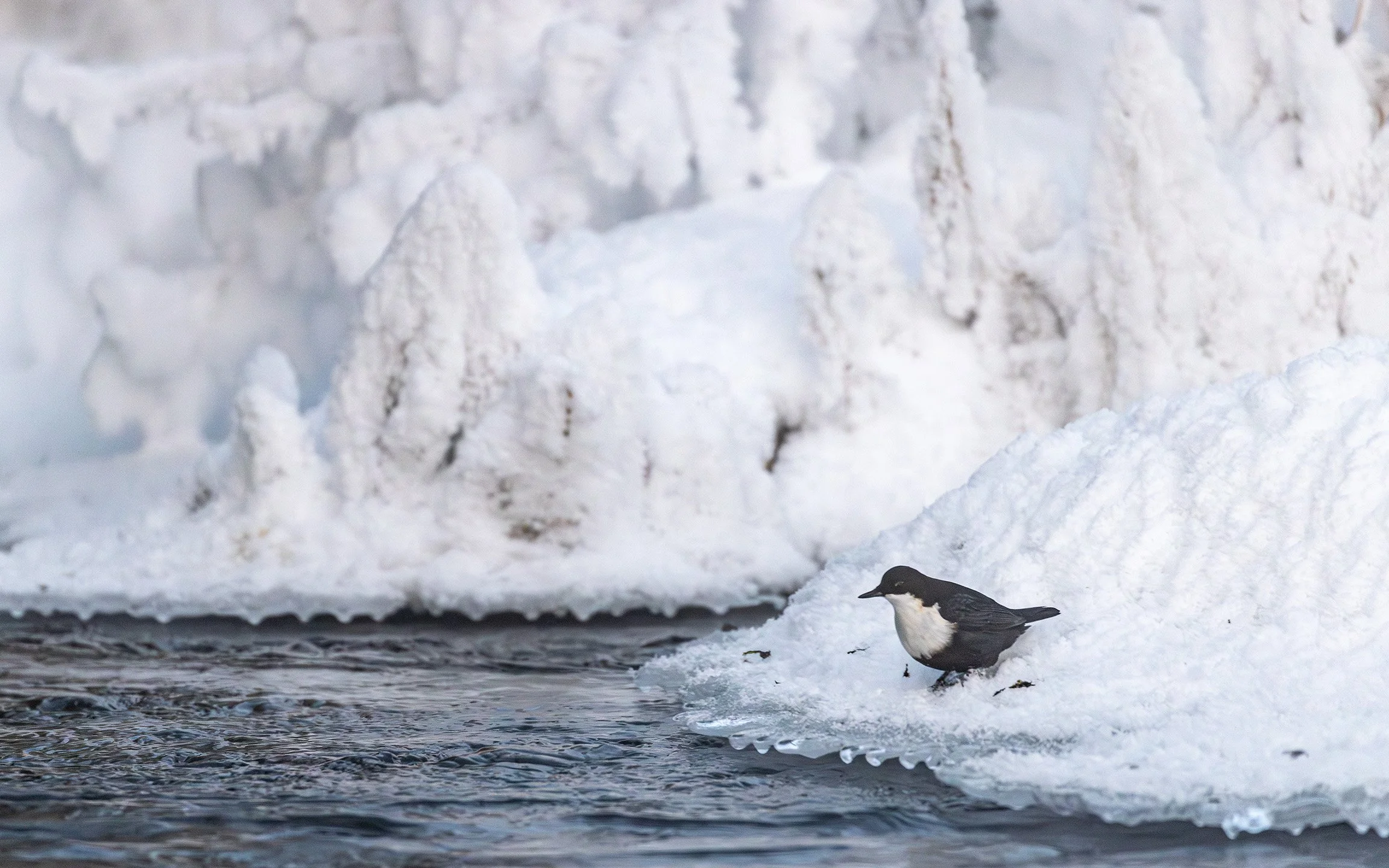 A number of dippers were busy diving from the icy shorelines to catch larvae in the water.